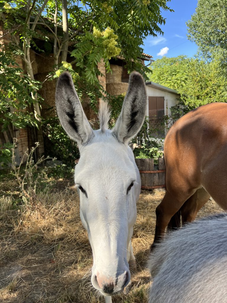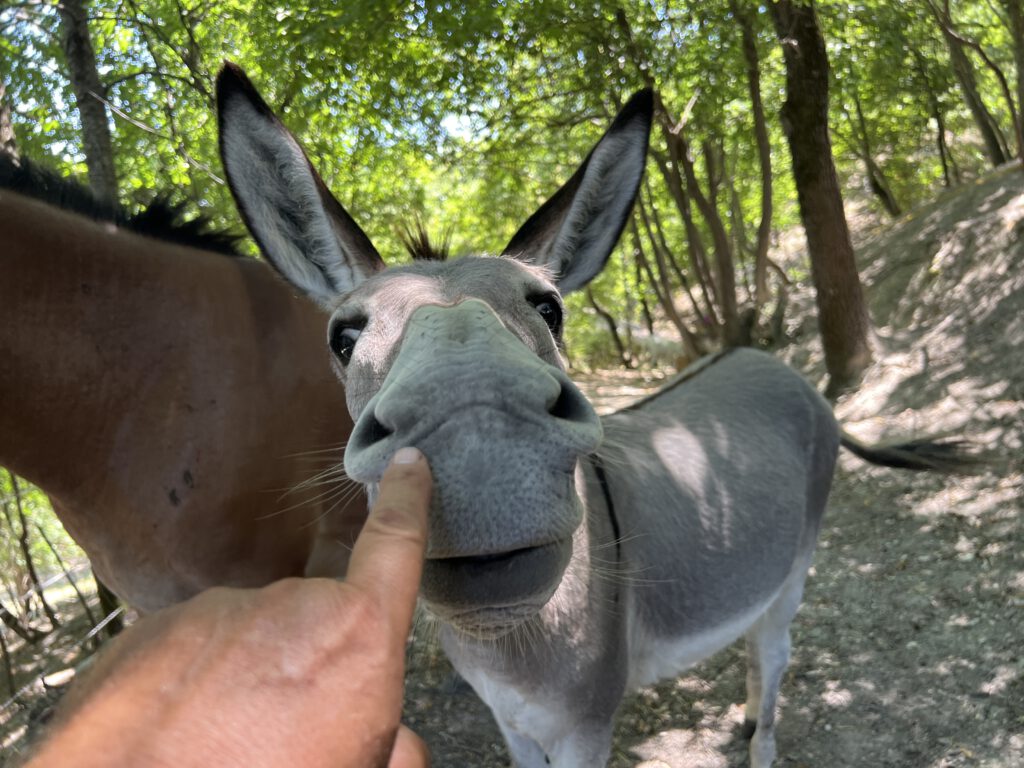 Nanu ist unser kleiner Amiataesel, ein Grautier wie aus dem Bilderbuch. Neugierig, interessiert, ein lieber Kerl.