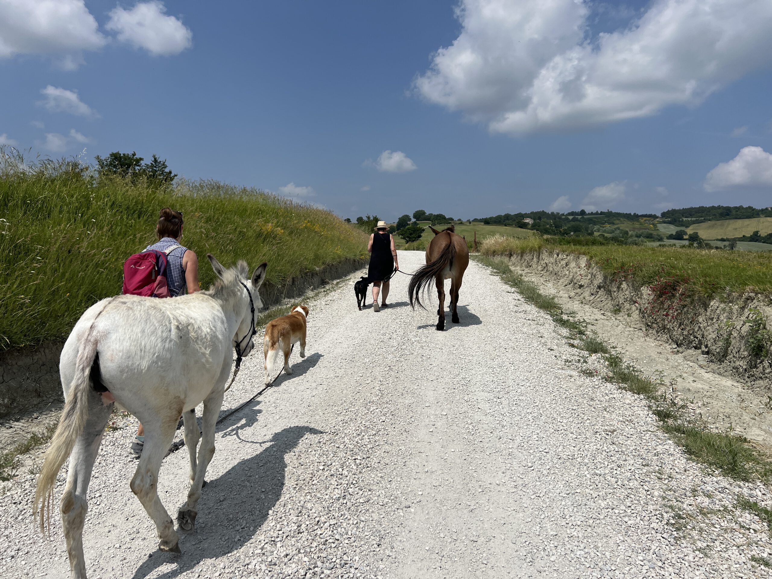 Menschen freuen sich und sind aufgeschlossen, haben Freude an euch, eine Eselwanderung ist etwas ganz anderes als ein Spaziergang alleine. Wer einem Reiter ausweicht, einem Motorradfahrer vielleicht zuwinkt, gibt einem Eselgänger die Hand, teilt sein Wasser mit ihm und erzählt eine Geschichte.
